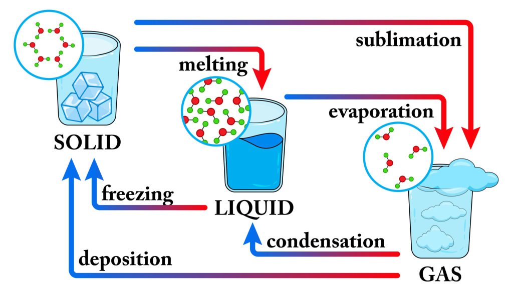 - The difference between The three States of matter is due to their energy contents and the motion of the particles.