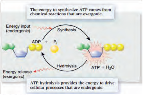 - ATP Hydrolysis: The reaction where ATP is broken down into ADP and inorganic phosphate (Pi), releasing energy.