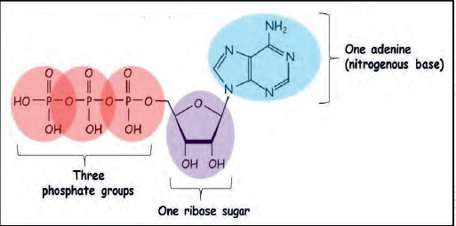 - ATP (Adenosine Triphosphate): A high-energy molecule used by cells to store and transfer energy. Composed of an adenine base, a ribose sugar, and three phosphate groups. ATP is hydrolyzed to ADP (adenosine diphosphate) and a phosphate group, releasing energy.