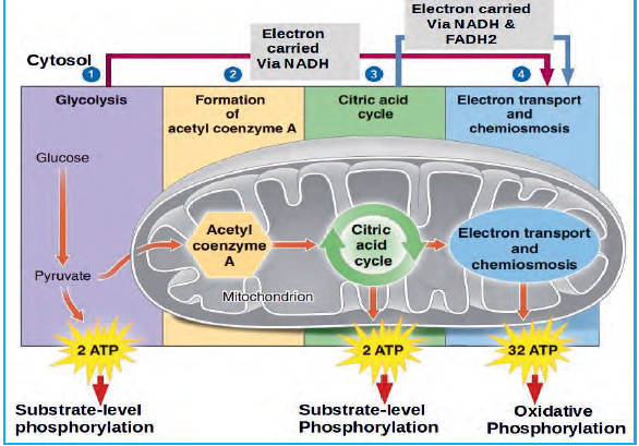 - Oxidative phosphorylation (electron transport chain).