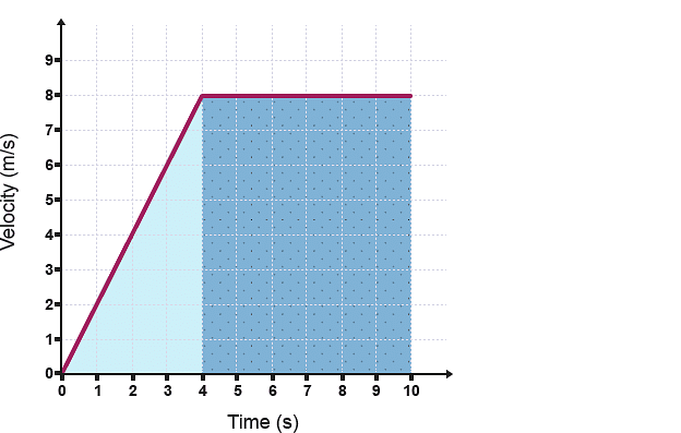 - We can also get the displacement travelled from the velocity vs. time graph by finding the area of the region between the line and the time axis.