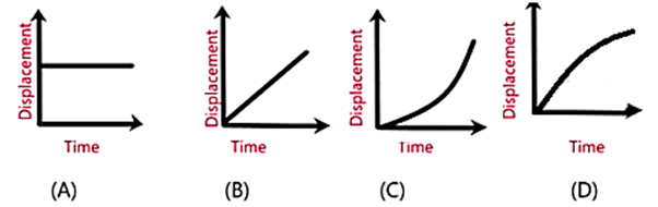 - The displacement-time graph for uniform acceleration is a graph that gives a curved or a parabolic line because the rate of change of velocity in equal intervals of time changes as the moving object accelerates. Figure 3.5 (c)