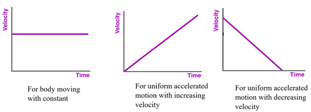 - It means that the graph will discuss the motion of the body by seeing the change in its velocity with respect to time.