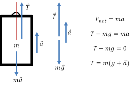 Figure 4.5 An object hangs by a string in an elevator accelerating upward