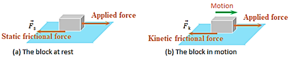 - Once the static friction gives way to kinetic friction, i.e., the block is in motion, it is easier to keep it in motion than it was to get it started, indicating that the kinetic frictional force is less than the static frictional force.