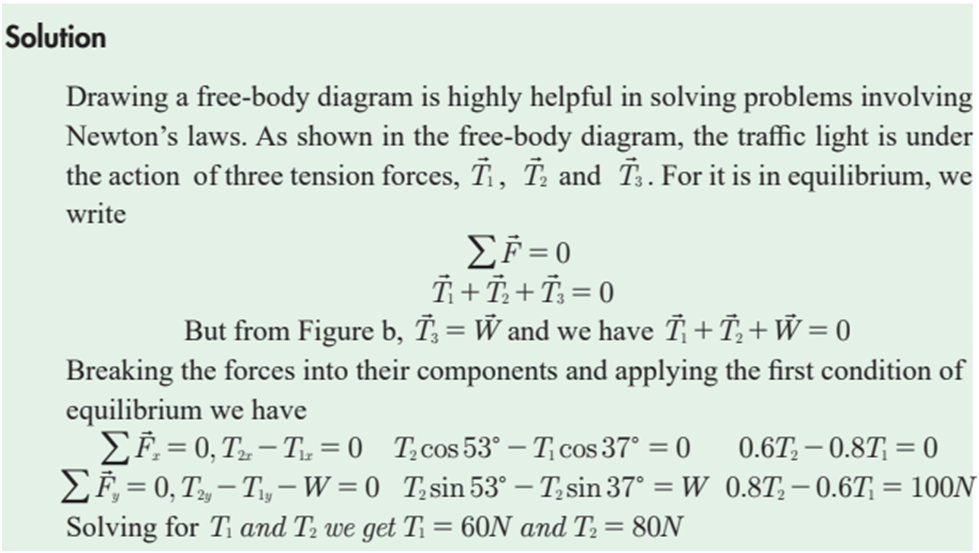 Figure 4.6 A traffic light suspended from two strings solution