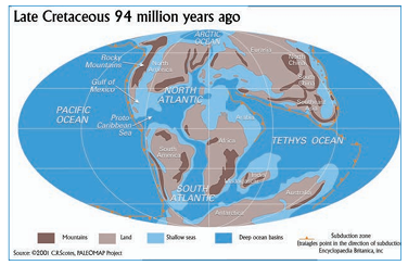 Figure 1.12: Location of continents and Oceans during the late Cretaceous