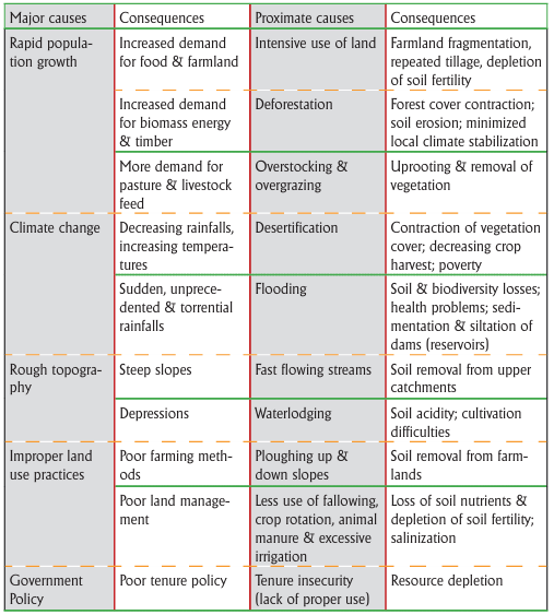 The sources of land resource degradation can be categorized as underlying and proximate causes.