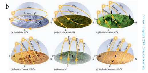 Figure 2.6 Relationships between Earth’s axis and the circle of