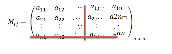 Definition: Let $A = (a_{ij})_{n}$ be a matrix , where $n \in \mathbb{Z^+}$ and M be the sub matrix obtained by deleating $i^{th}$rows and $j^{th}$ column of A.