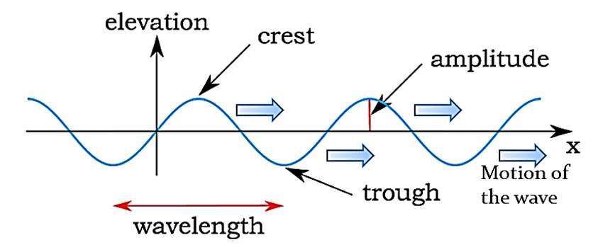 wavelength and amplitude; - describe terms like crest, trough and wave speed;